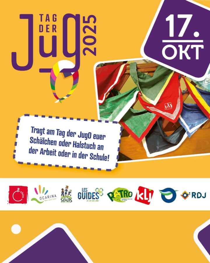 Der Tag der Jugendorganisationen findet jedes Jahr im Herbst statt und soll dem dahinter verborgenen Ehrenamt mehr Sichtbarkeit und Anerkennung schenken. An diesem Tag werden jedes Jahr Kinder, Jugendliche und Erwachsene dazu aufgefordert, ihr Schälchen oder Halstuch zur Arbeit, Uni oder Schule zu tragen. So wird sichtbar, wie viele Kinder und Jugendliche sich eigentlich in einer Jugendorganisation in Ostbelgien engagieren!