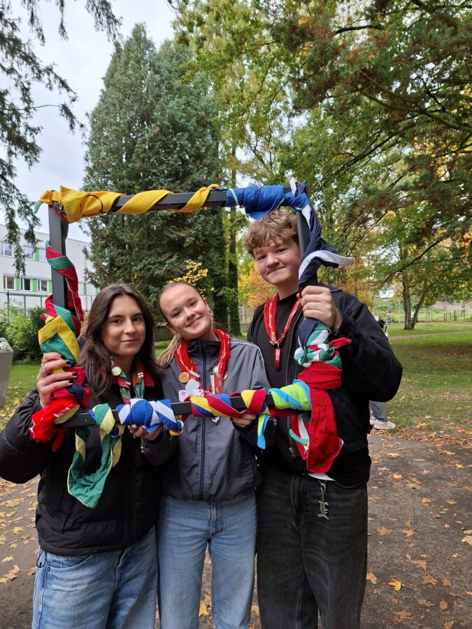 Auch in diesem Jahr waren wieder die Ehrenamtlichen des RDJ in den Sekundarschulen Ostbelgiens unterwegs, um Schälchenträger:innen ein kleinen Pin oder Aufnäher zum Tag der JugO zu überreichen. Viele Kinder und Jugendlichen zeigten voller Stolz ihr Halstuch / Schälchen und freuten sich über den Besuch der RDJ-Ehrenamtlichen. Es war schön zu sehen, wie viele Kinder und Jugendliche, sogar Erwachsene, ihr Halstuch trugen! 🎉