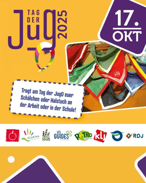 Jedes Jahr ruft der RDJ dazu auf, am letzten Freitag vor den Allerheiligenferien das Halstuch oder das Schälchen den ganzen Tag über zu tragen. Dabei spielt es keine Rolle, in welcher Einrichtung ihr tätig seid – das Ehrenamt soll sichtbar gemacht werden! Diese Aktion ist ein starkes Symbol der Solidarität und Anerkennung für alle, die sich in Jugendorganisationen einbringen.